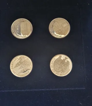 Conjunto de cuatro monedas de plata 999. Con certificado y caja. - Moneda 1: SEPULCRO DEL APÓSTOL SANTIAGO - Moneda 2: SANTA PUERTA - Moneda 3: CATEDRAL DE SANTIAGO - Moneda 4: PORTICO DE LA GLORIA