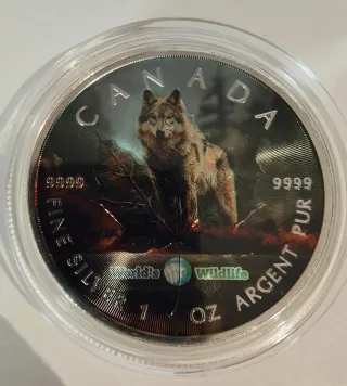 Moneda de plata pura de 1 oz con diseño de lobo. - Vida Salvaje Lobo - Plata fina 9999 - Fine Silver y Argent Pur - 1 oz - Canada. -Edicion limitada de 100 unidades, con certificado de autenticidad numerado. -Mas monedas en mi perfil