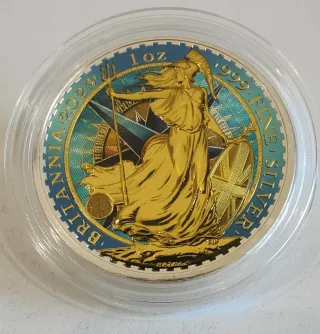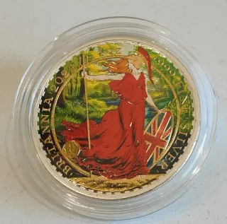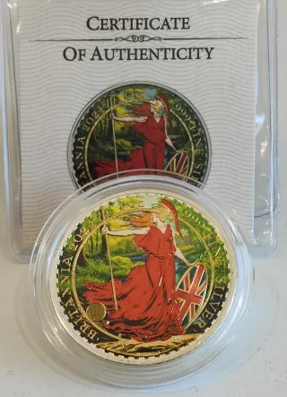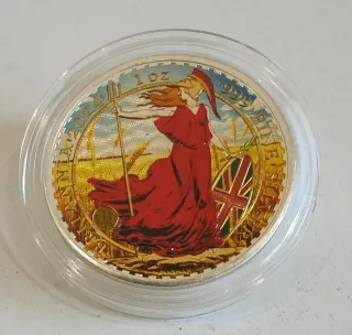 Moneda conmemorativa Britannia de 1 onza de plata pura 999. - Diseño detallado de Britannia con el tridente y el escudo de la Union Jack. - Fondo con Stonehenge y un atardecer. - Acabado en oro selectivo en la figura y el escudo. -Edicion limitada de 100 unidades, con certificado de autenticidad enumerada. -Mas monedas en mi perfil