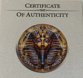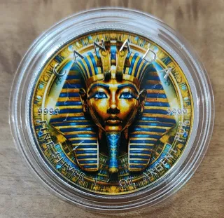 Moneda conmemorativa de plata fina de 1 onza, con diseño de Tutankamón. - Acabado en oro y colores vibrantes. - Canto con inscripciones. - Pureza de 9999. - CANADA en la parte superior. - FINE SILVER 1 OZ ARGENT PUR en el borde. -Edicion limitada de 100 unidades ,con certificado de autenticidad numerado. -Mas monedas en mi perfil.