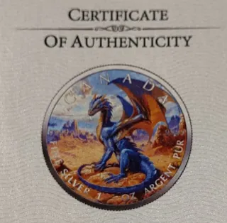 Moneda de plata canadiense con diseño de dragón. - Plata fina .9999 - 1 Onza - Diseño detallado de dragón -Edicion limitada de 100 unidades, con certificado de autenticidad numerado. -Mas monedas en mi perfil.