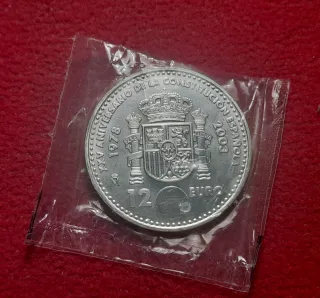 Moneda 12 euros de plata del año 2003. Conmemorativa del 25o aniversario de la Constitución Española. En bolsa original sellada FNMT. Sin Circular. UNC. Época Juan Carlos I. También envío por correo ordinario (desde 1 euro) y certificado asegurado (desde 5 euros).
