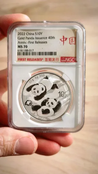 Moneda de Plata Panda 2022 MS70 NGC 40 Aniversario