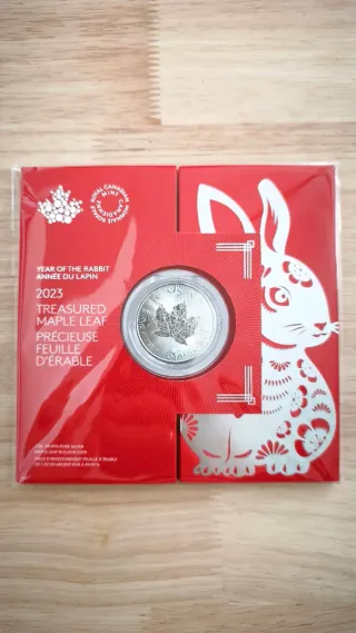 👉 Edición Maple Leaf Atesorado 👉 ESTADO EXQUISITO Moneda de plata pura de 1 onza de la Maple Leaf Treasured, edición 2023 Año del Conejo (Year of the rabbit) - Hoja de arce - Monedas a estrenar - Plata 99.99% pura. - Diseño de la hoja de arce. - Acuñada por la Royal Canadian Mint. - Estuche sin abrir PRECINTADO - Edición limitada - Muy difícil de conseguir 👉 Me quedan 5 unidades Entrega en Toledo o envio * lince ibérico, toro, caballo cartujano, águila imperial, oso pardo, oro, panda, Krugerrand, koala, canguro, britannia, filarmónica, bullion, libertad