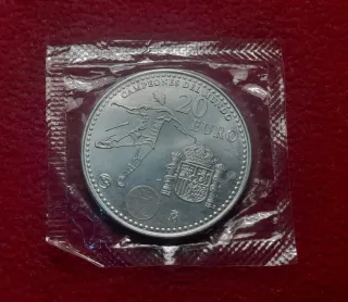 Moneda 20 euros de plata del año 2010. Conmemorativa de la selección española de fútbol Campeones del mundo Mundial FIFA Sudáfrica 2010. En bolsa original sellada FNMT. Sin Circular. UNC. Época Juan Carlos I. También envío por correo ordinario (desde 1 euro) y certificado asegurado (desde 5 euros).