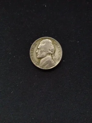 Pieza de colección de 5 centavos de Estados Unidos, con fecha de 1942. - Diseño de Thomas Jefferson en el anverso. - Inscripción IN GOD WE TRUST y LIBERTY. -35% plata.