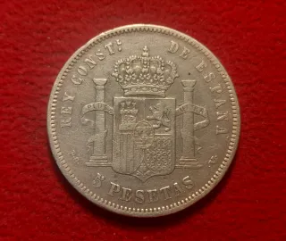 Moneda 5 pesetas plata 1875 estrella 75
