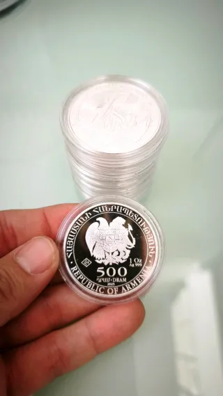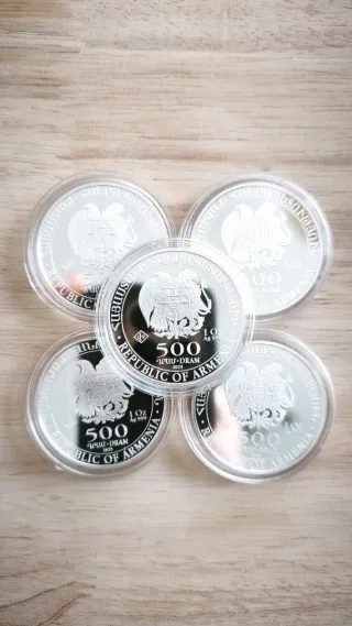 👉 Entrega en mano en Toledo 👉 No negocio precio 👉 Entrega inmediata Lote de 5 monedas de plata de 1 onza con diseño del Arca de Noé. - Peso: 1 Onza (31.1g) x 5 unidades - Pureza: 99.9% Plata - Año: 2025 - Diseño: Arca de Noé Armenia - Capsulas Leuchtturm * lince ibérico, toro, caballo cartujano, águila imperial, oso pardo, oro, bullion, Krugerrand, libertad, panda, britannia, american eagle, hoja de arce, koala, canguro, filarmonica