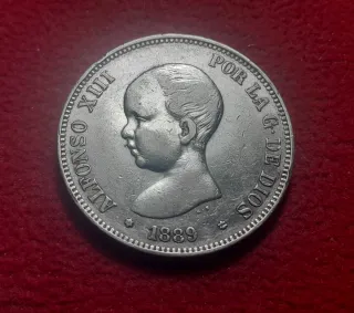 Moneda 5 pesetas (duro) de plata de Alfonso XIII año 1889 estrella 89 MP M. Estrellas visibles!! 100% original. Se envía la moneda de las fotos. También envío por correo ordinario (desde 1 euro) y certificado asegurado (desde 5 euros).