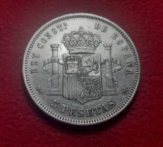 Moneda 5 pesetas plata 1885 estrella 85