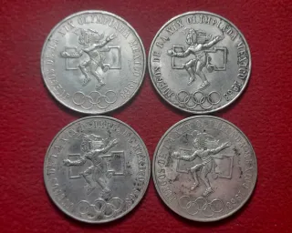 Conjunto de cuatro monedas de plata mexicanas. - Cada moneda tiene un valor de 25 pesos. - Contienen 0.720 de plata. - Diseño del águila mexicana. También envío por correo ordinario (desde 1 euro) y certificado asegurado (desde 5 euros).