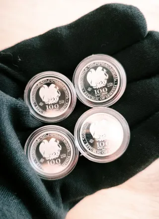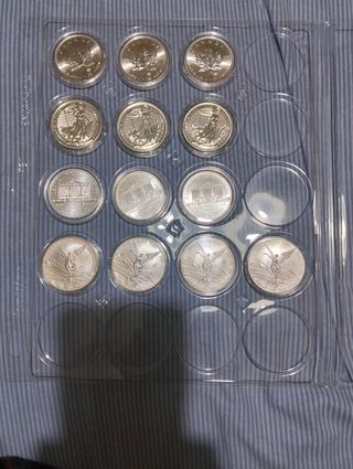 Conjunto de onzas de plata, ideales para coleccionistas e inversión - Diseño detallado en cada moneda. - Acabado brillante de plata pura.