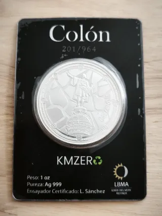 👉 EDICIÓN AGOTADA de 964 unidades Moneda de plata conmemorativa de Colón. - Andorrano Joyeria - Peso: 1 oz - Pureza: Ag 999 - Certificado por L. Sánchez - Edición limitada: 201 de 964 - KMZERO - Acuñada con plata reciclada de Barcelona - Muy difícil de conseguir - Nueva a estrenar Entrega en Toledo o envío Nacex 24h (8€) 👉 Ruego seriedad, no rebajo precio 👉 SI QUIERES 2 UNIDADES CON NÚMEROS CONSECUTIVOS TENGO * lince ibérico, toro, caballo cartujano, águila imperial, oso pardo, oro, panda, Krugerrand, koala, canguro, britannia, filarmónica, bullion, libertad, kookaburra, maple leaf...