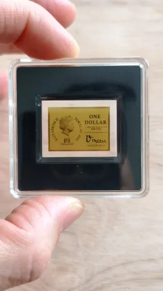 🚩 HAGA UN REGALO ESPECIAL 👉 MONEDA DE ORO 1/500 OZ 24K Esta elegante moneda de oro forma parte de la serie "Obras Maestras de Vincent Van Gogh", dedicada a 12 fascinantes pinturas de Vincent Van Gogh. En esta emisión: COMEDORES DE PATATAS La moneda tiene forma rectangular, un diseño magnífico y se presenta en una cápsula, junto con el Certificado de Autenticidad. 👉 Regala Arte, regala Oro 👉 RUEGO SERIEDAD, NO REBAJO PRECIO ✔ TENGO 2 Unidades * lince ibérico, toro, caballo cartujano, águila imperial, oso pardo, plata, panda, Krugerrand, koala, canguro, britannia, filarmónica, libertad, bullion