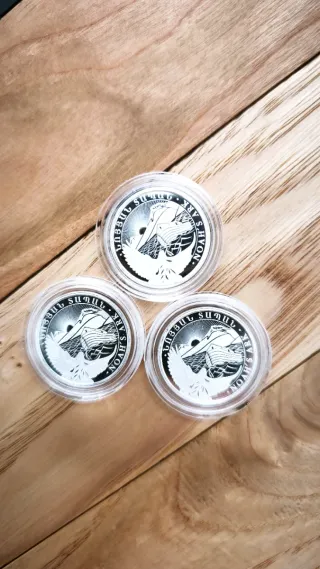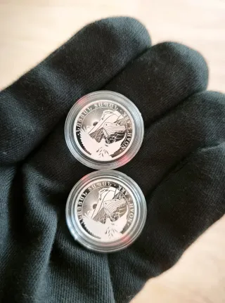 👉 Me quedan 2 unidades 👉 No rebajo precio gracias Se venden impresionantes monedas de 1 Onza de plata fina de 9999 de pureza A ESTRENAR, en cápsulas de la Perth Mint, Koala 2023. Peso: 1 Onza Troy (31.10g) País: Australia Año: 2023 Condición: BU sin circular Valor Nominal: 1 AUD Diámetro: 40.9 mm Tirada: 300.000 * lince ibérico, toro, caballo cartujano, águila imperial, oso pardo, oro, bullion, Krugerrand, libertad, panda, britannia, american eagle, hoja de arce, koala, canguro, filarmonica...