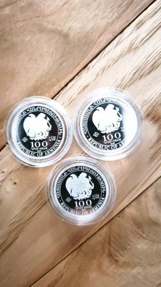 👉 NO ME HAGAN OFERTAS GRACIAS 👉 Entrega inmediata Lote de 3 monedas de plata de alta pureza con diseño del Arca de Noé, con un peso de 1/4 Oz cada moneda. - Plata 999 - 3 x 1/4 Onza (Peso total 3/4 onza) - Diseño: Arca de Noé - Año: 2025 - Origen: Armenia - Con cápsula Leuchttrurm Con una alta calidad de fabricación y sistemas de seguridad y autenticidad, estas monedas son muy apreciadas tanto por coleccionistas como inversores. * lince ibérico, toro, caballo cartujano, águila imperial, oso pardo, oro, bullion, Krugerrand, libertad, panda, britannia, american eagle, hoja de arce, koala, canguro, filarmonica de viena...