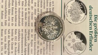 ¡Coleccionistas y amantes de la historia de la ciencia! En venta una impresionante medalla conmemorativa dedicada a Otto Hahn, el renombrado químico y físico alemán que descubrió la fisión nuclear (Kernspaltung) en 1938. Características: ✅ Material: Plata pura .999 ✅ Diseño exclusivo: Retrato de Otto Hahn con el esquema del proceso de fisión nuclear ✅ Reverso: Majestuoso águila alemana con la inscripción “Deutsches Museum München” ✅ Estado: Excelente, conservada en cápsula protectora ✅ Ideal para coleccionistas y amantes de la ciencia No dejes pasar esta oportunidad de adquirir una pieza única con gran valor histórico y numismático. ¡Contáctame para más información o para concretar la compra!