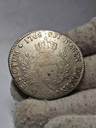 Características Emisor: Francia Rey: Luis XV (Louis XV) (1715-1774) Tipo: Monedas circulantes normales Año: 1768 Valor: 1 Silver Ecu Unidad monetaria: Livre tournois (1204-1795) Composición: Plata 917 Peso: 29,488 g Diámetro: 41 mm Grosor: 2,6 mm