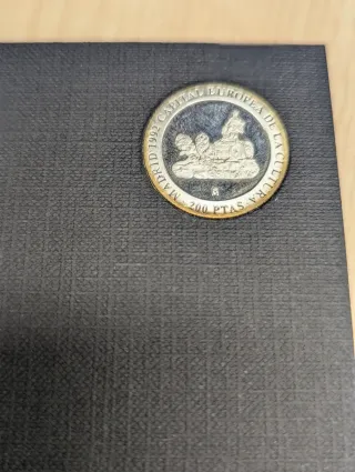 Moneda conmemorativa de plata de 1992. La moneda nunca ha circulado y va en su estuche original de plástico duro y con certificado autenticidad. La moneda tiene los bordes con pátina por los años y la humedad, pero mantiene brillo. - Madrid Capital Europea de la Cultura. - Valor: 200 PTAS. - Diseño con carro y figuras.