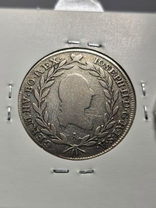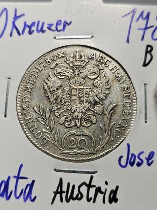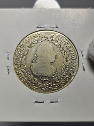 Características Emisor: Imperio austríaco (Austria) Emperador: José II (1780-1790) Tipo: Monedas circulantes normales Año: 1786 Valor: 20 Kreuzers (1⁄3) Unidad monetaria: Gulden (1754-1857) Composición: Plata Peso: 6,68 g Diámetro: 27 mm Grosor: 1,2 mm