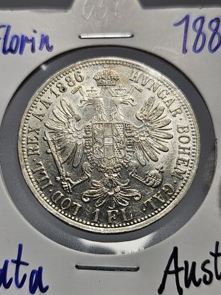 Características Emisor: Imperio austríaco (Austria) Emperador: Francis Joseph I (Franz Joseph I) (1848-1916) Tipo: Monedas circulantes normales Año: 1886 Valor: 1 florín Unidad monetaria: Gulden (decimalized, 1857-1892) Composición: Plata Peso: 12,34 g Diámetro: 29 mm Grosor: 2 mm