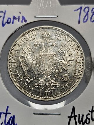 Características Emisor: Imperio austríaco (Austria) Emperador: Francis Joseph I (Franz Joseph I) (1848-1916) Tipo: Monedas circulantes normales Año: 1888 Valor: 1 florín Unidad monetaria: Gulden (decimalized, 1857-1892) Composición: Plata Peso: 12,34 g Diámetro: 29 mm Grosor: 2 mm