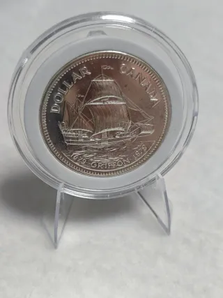 Moneda conmemorativa de 1 dólar canadiense del año 1979. - Diseño del barco Le Griffon. - Acabado en plata. - 23,3 gramos plata 500.
