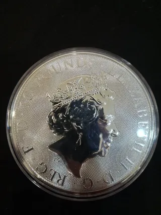 Última unidad! Moneda de colección de 10 onzas de plata pura. - Plata fina .999. - Diseño de la serie Queen Beasts. - Año 2023. palabras: maple, panda, hoja de Arce, coin, bullion, silver, toro y oso, Franco, plata, peseta, britania, krugerrand, arca de Noé, onza, 1oz plata, duros, Paquillo, inversión, libertad, México, eeuu, oro