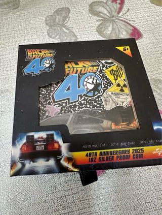 Moneda 40 Aniversario de Back to the future de 1 oz de plata. Edicion Limitada a 1.000 unidades en todo el Mundo Caracteristicas: País De Emisión: Nive Ano: 2025 Denominación: $2 Tipo de metal: Plata Peso (g): 31,1 Pureza (%): 99,9 Diámetro (mm): 40.00 Limitada: 1.000 unidades Articulo de Coleccion
