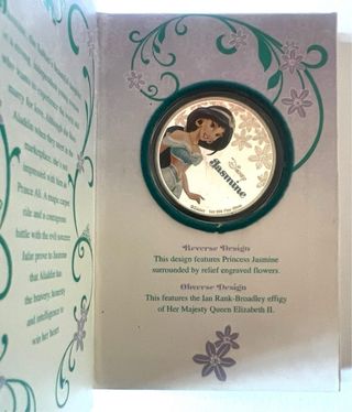 Moneda de plata de edición limitada de la princesa Jasmine de Disney. - Diseño inspirado en la película. - 1 oz de plata.