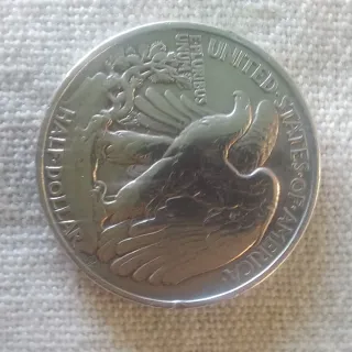 Moneda de medio dólar de plata con el año 1945. - Diseño de la Libertad caminando. - Grabado IN GOD WE TRUST.