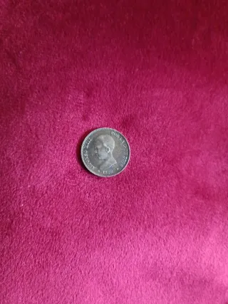 Moneda de 50 céntimos de Alfonso XIII acuñada en 1892. - Espesor: 1,3 mm - Borde: serrado - Diámetro: 23 mm - peso 2,5 gr. - Composición: Plata 0,900.