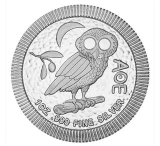 Monedas de plata de 1 onza con diseño de búho 2020 - Año: 2020 - Pureza: .999 Fine Silver - Diseño: Búho con rama de olivo y luna creciente - Inscripciones: AOE, 1oz .999 FINE SILVER