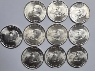 Colección de monedas de la época de Franco. - Variedad de diseños y valores. - 100 ptas plata, 50/25/5pta 1.949/5pta 1.957, 2'50/ Ptas de 1.944/1.947/1.953/1.963 y 1.966. 0'50 1.947 y 1.966. 0'25 1.937.0'10 1.945/1.953 y 1.966. 0'5 1.941 y 1 y 5 ptas de Guinea Español!