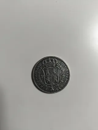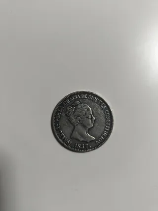 Moneda de plata con la efigie de Isabel II y el año 1837. - Canto con inscripción. - Leyenda: POR LA GRACIA DE DIOS Y LA CONSTITUCION. - Reverso: ISABEL 2ª 1837.