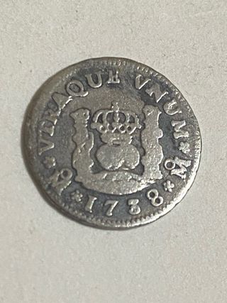 Moneda de plata de 1/2 Real Colunario, con fecha de 1738. - Diseño con columnas y corona. - Inscripción VTRAQUE VNUMA y 1738. In columnario es un columnario... de felipe V Mejico... seria un mbc- EL PRECIO NO ES NEGOCIABLE GRACIAS