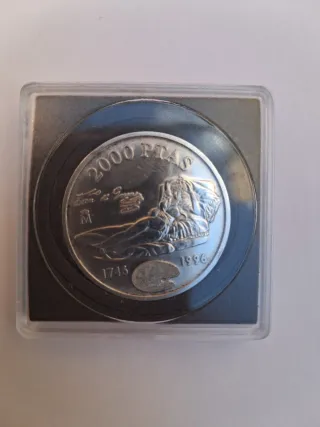 Moneda conmemorativa de 2000 pesetas de plata, conmemorativa Goya. - Año de acuñación: 1996. - Material: Plata. - Diseño: Retrato de Goya.