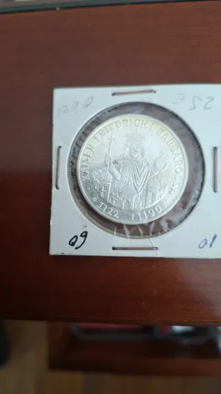 Moneda conmemorativa de Alemania. Lei 0.625 de plata.Venta solo en mano. - Representa al emperador Federico I Barbarroja. - Incluye las fechas 1122 y 1190.