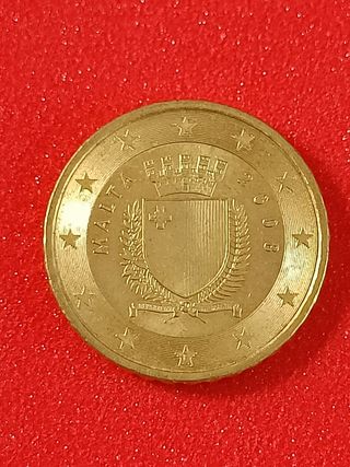 Moneda de 10 céntimos de Malta del año 2008. - Diseño con el escudo de Malta. - Borde con estrellas y el año de acuñación.