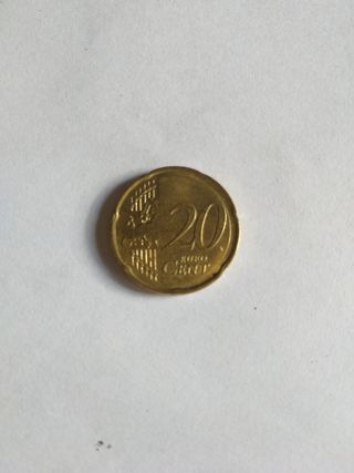 Moneda de 20 céntimos de €. Año 2008, de Malta con el escudo de armas del país. Muy difícil de conseguir.