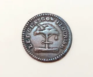 Anverso: T: FINLAYSON ONE FARTHING: 68 KING: ST. en cuatro líneas, la primera y la última curvas. Reverso: El escudo de armas de Glasgow, LET GLASGOW FLOURISH. Canto: Liso. One farthing equivalente a 1/4) de penique.