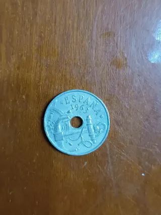 Moneda antigua peseta fue emitida en plena dictadura franquista. También el metal en el que está acuñada, es en curponíquel y pesa 5,75 gramos. Su diámetro es de 23 milímetros y debe tener un grosor de 1,5 mm. En el anverso (la cara) aparece Franco de perfil con la leyenda: ‘Francisco Franco caudillo de España por la G. de Dios’ y entre dos puntos, el año 1957. En el reverso (la cruz) se aprecia el águila que fue escudo de la bandera de aquellos años. En este caso con la leyenda ‘Una, grande, libre’, lema de esa época.