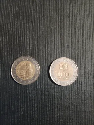 Se venden dos monedas de 100 escudos de Portugal, acuñadas en el año 1989. - Moneda de 100 escudos. - Año de acuñación: 1989. - País: Portugal.