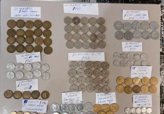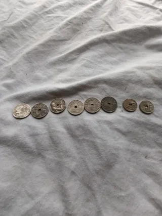 Conjunto de monedas antiguas de España. Cada moneda tiene un diseño único y representa una época. - Monedas de diferentes años y valores. - Diseños variados con motivos históricos y culturales. - Piezas de colección para aficionados a la numismática. ESCUCHO OFERTAS