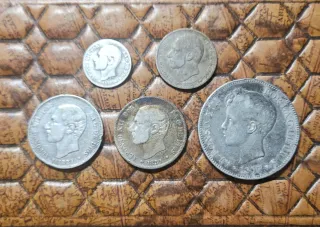 Conjunto de monedas españolas acuñadas en plata y bien conservadas del S.XIX pertenecientes a los reinados de Alfonso XII y Alfonso XIII 🇪🇸 50 CÉNTIMOS - Alfonso XII 1880 (2.5g) 1 PESETA - Alfonso XII 1883 (5g) 2 PESETAS - Alfonso XII 1881 (10g) - Alfonso XII 1881 (10g) 5 PESETAS - Alfonso XIII 1897 (25g) Quedo a disposición para resolver cualquier duda o cuestión.
