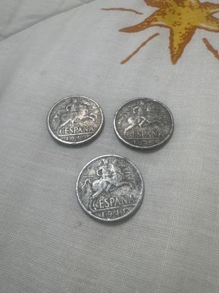 Conjunto de tres monedas españolas de 10 céntimos. - Moneda de 1940. - Moneda de 1941. - Moneda de 1945.