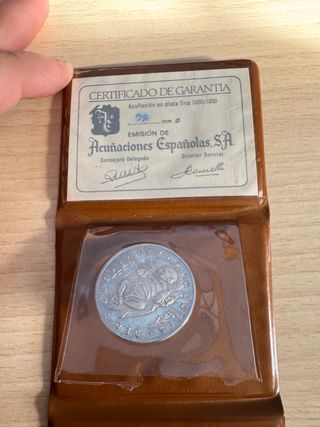 Certificado de garantía para moneda de acuñación en plata fina 1000/1000. - Diámetro: 28 mm. - Emisión de Acuñaciones Españolas, S.A.