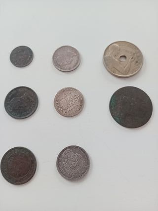 Lote de ocho monedas españolas, tal como se ven en la imagen. Estas son: 5 centimos 1877 25 centimos 1934 2 centimos 1912 2 centimos 1904 1 centimo 1913 50 centimos 1904 50 centimos 1926 50 centimos 1892 Envios o entrega en mano en Alcobendas. PRECIO NO NEGOCIABLE