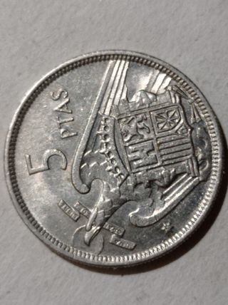 Preciosa moneda de cinco pesetas españolas de 1949, en buen estado de conservación. - Muestra el perfil de Franco. - Reverso con el escudo de España. - Ideal para coleccionistas. *ESCUCHO OFERTAS* Más coleccionismo en mi perfil*