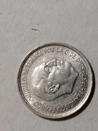 Se ofrece moneda de peseta española de 1966 con la efigie del General Franco. La moneda luce en buen estado de conservación. - Moneda de peseta española. - Año de acuñación: 1966. - Efigie del General Franco.